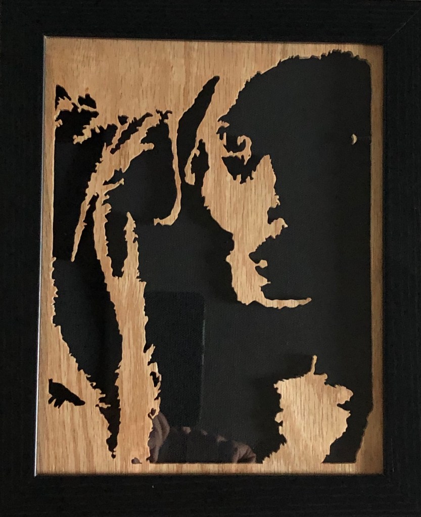 Nugget (Sold) $50 Constructed with oak plywood over black fabric. Includes a black frame with glass. Size: 8 X 10 Related