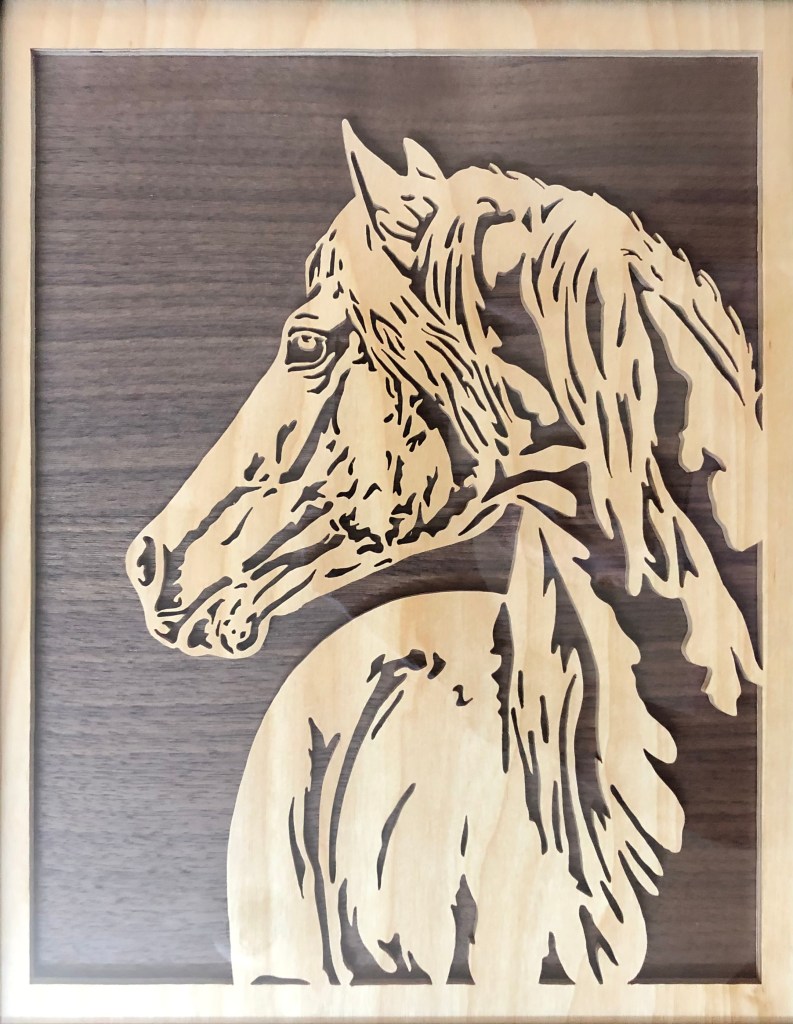 Saddle-Free Zone (Sold) Constructed with Baltic birch plywood over walnut veneer. Includes a brown frame with glass. Size: 11 X 14 $195.00 Related
